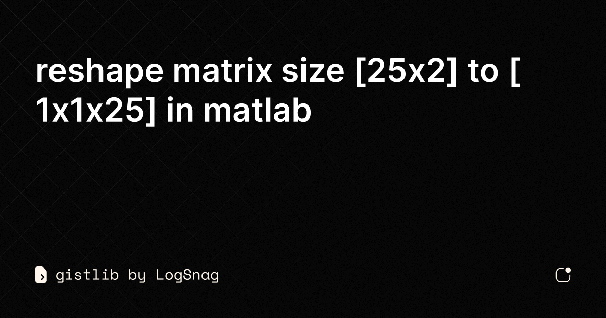 gistlib reshape matrix size [25x2] to [1x1x25] in matlab